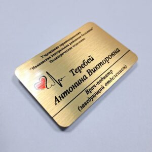 Металлические бейджи с окошком для вставки ФИО (Золото зеркальное)